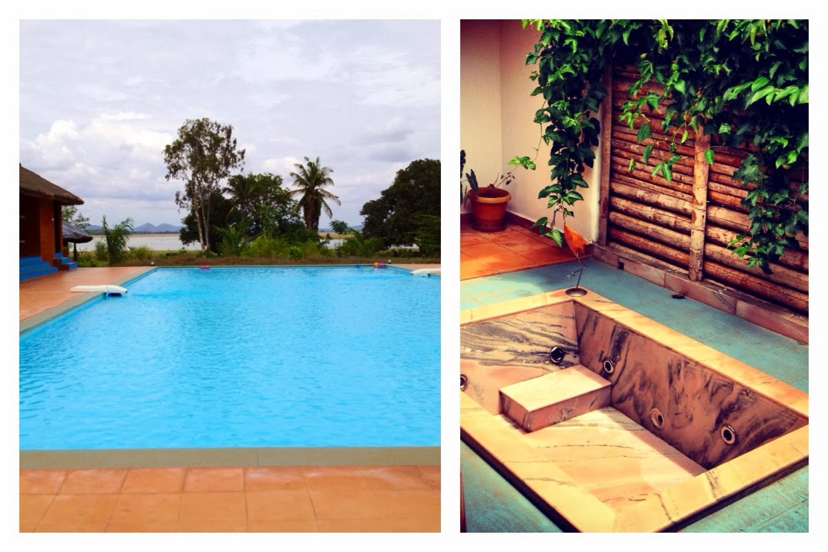 As the Earth moved away from the sun, we lazed by the still, glassy infinity pool, watched coracle-riders, in the distance, trying to make their way back across the river and drank and ate obscene amounts of food. And how! All our meals were prepaid, we had South Indian goodness on our plates for the entire duration of our stay. Fresh river-picked fish, coconut and cashew nut curries, am-ras, a summery mango drink, spicy homemade pickles, akki rotis, made of rice flour, and other food that was equally appetizing. We ate and ate and ate some more. So, at dinner, at about 9pm on the first of the two evenings, we were mildly embarrassed. A table was set up for us, with the three most romantic Cs – candlelight, cake and champagne. We didn’t retire for the night until we spotted the premature moon among the clouds, a pearly white crescent. The weather, withstanding, was pretty fantastic, a slight drizzle on occasion.