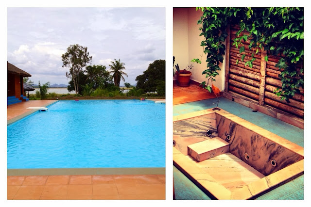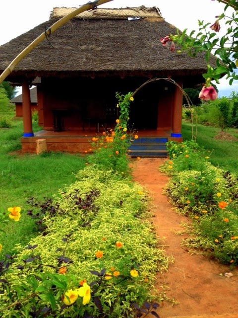 The landscape was out of a painting, lush colours in the skies, gardens and water. Our cottage, one of the fifteen in this luxury resort, was built of natural, earthy red mud and housed an indoor open-air jacuzzi with a view of the river and, not without, plenty of delicious house wine. The cacophony of the insects rung in our ears and yet we were awed by the tranquility this space gave us. We could even see the striated mountains at the far end.